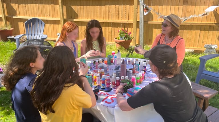 Artist Actor Improvisator Carol Ann Graham has developed a way to connect and uplift others with her intuitive abstract painting process. She encourages people to discover what sparks joy and vitality as she creates quick personal paintings in an interactive experience. She offers this unique gift at diverse events including parties, protests, weddings, memorials, art fairs and reunions.