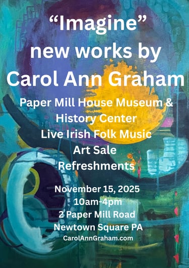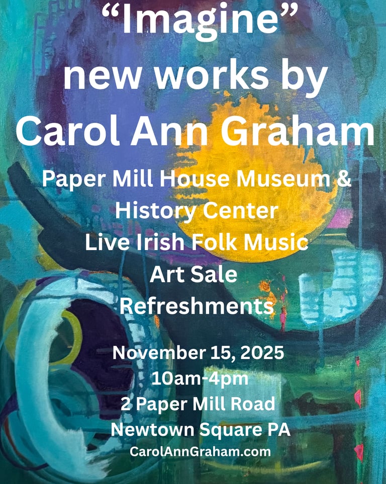 HealingArtConnection brought another interactive painting experience to The Paper Mill House in Newtown Square, Pennsylvania. The fall art exhibit opened 11.15.2025 and the event was lively including Irish and English folk music with the Time Travelers. Featuring local artists Carol Ann Graham’s exhibit “Imagine” and Cathy Agostinelli’s “Art at the end of the Trail”